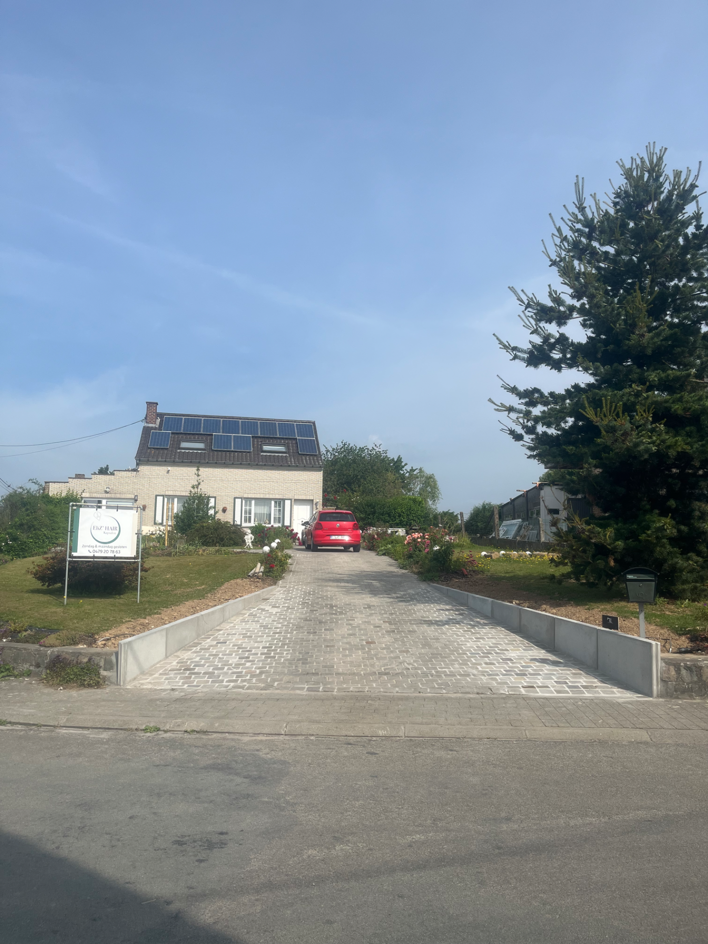 De bestaande oprit van het kapsalon Eliz-hair werd verbreed om de doorgang te verbeteren. Daarnaast plaatsten we L-elementen om het niveauverschil op te vangen, en werkten we alles strak af met plattines.